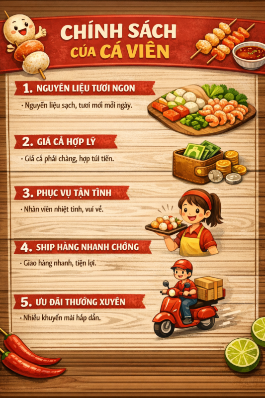 Chính sách giá là tập hợp các nguyên tắc định giá sản phẩm của Cá Viên nhằm cân bằng lợi ích giữa khách hàng và doanh nghiệp, tạo ra mức giá cạnh tranh, minh bạch và công bằng.